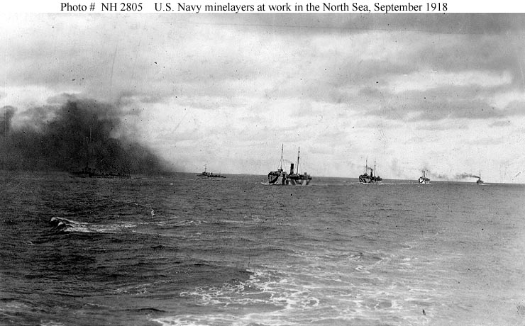 Photo #: NH 52995 Mine Squadron One, U.S. Atlantic Fleet Senior officers of the squadron, photographed on board ship in the North Sea area, September 1918. Those present are identified in Photo # NH 52995 (complete caption). U.S. Naval History and Heritage Command Photograph. Online Image: 88KB; 740 x 495 pixels |