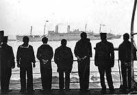 (upper left) and the ship's Commanding Officer, Captain Edward