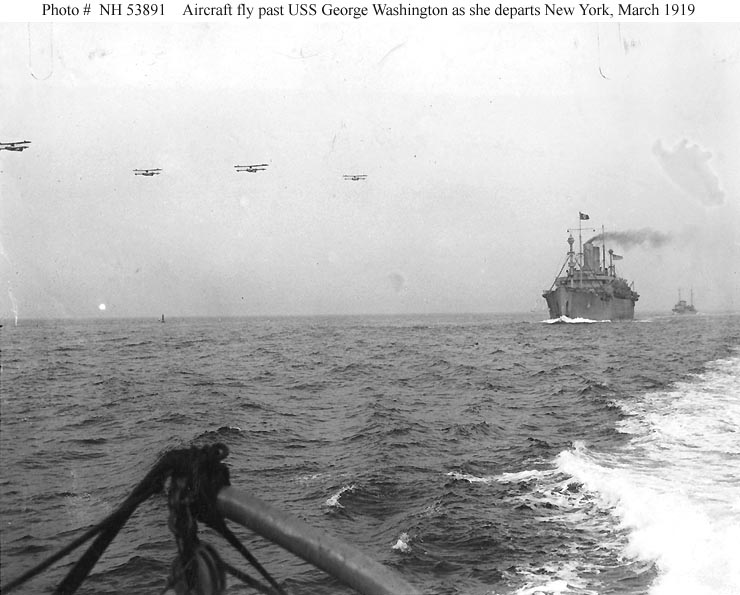 Steaming out of New York Bay on 5 March 1919, en route to France