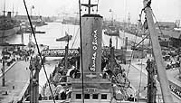 View on board, looking forward, while she was alongside the wharf