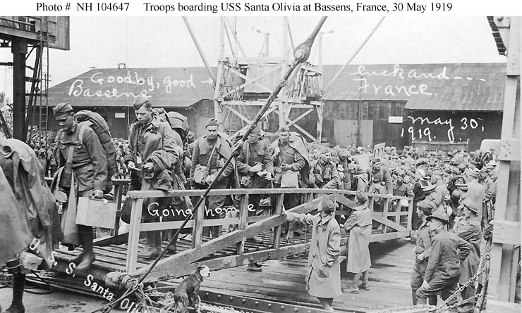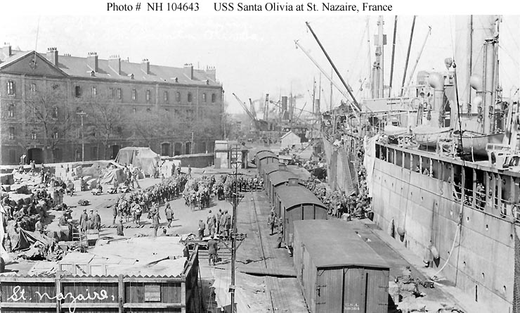 Embarking troops at St. Nazaire, France in 1919.
