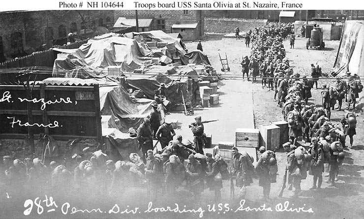 Troops of the 28th (Pennsylvania) Division boarding the ship
