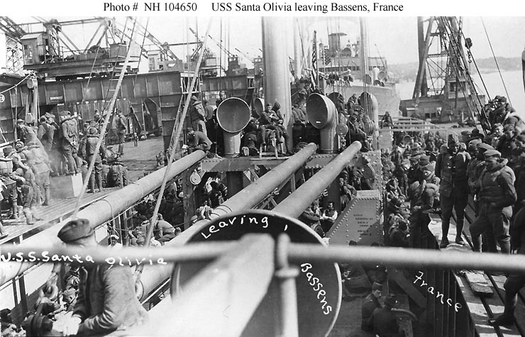 past the breakwater lighthouse at St. Nazaire, France in 1919.