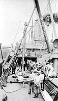 Boxing match on board, while the ship was en route from France