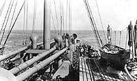 and Navy officers and men by the lifeboats at right.