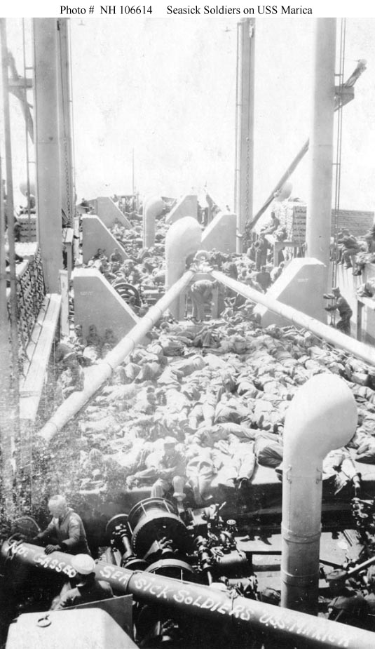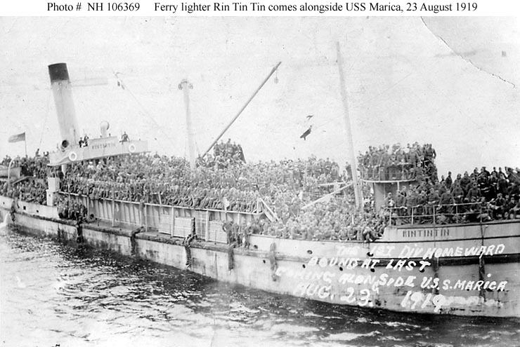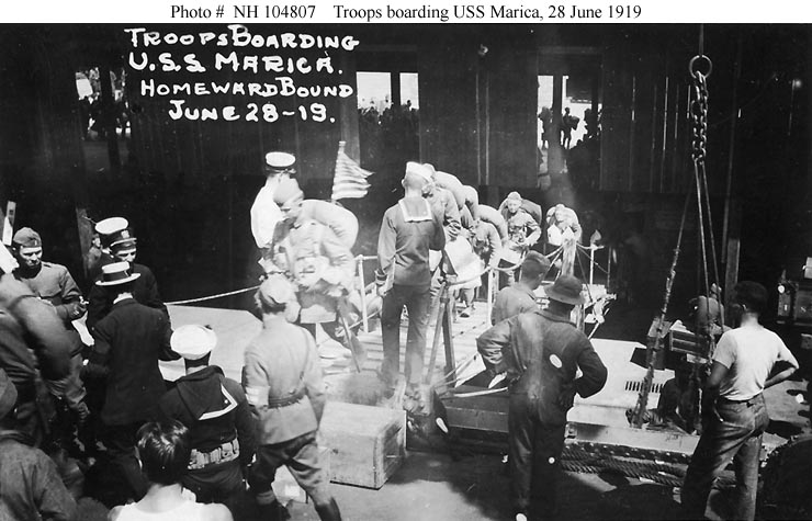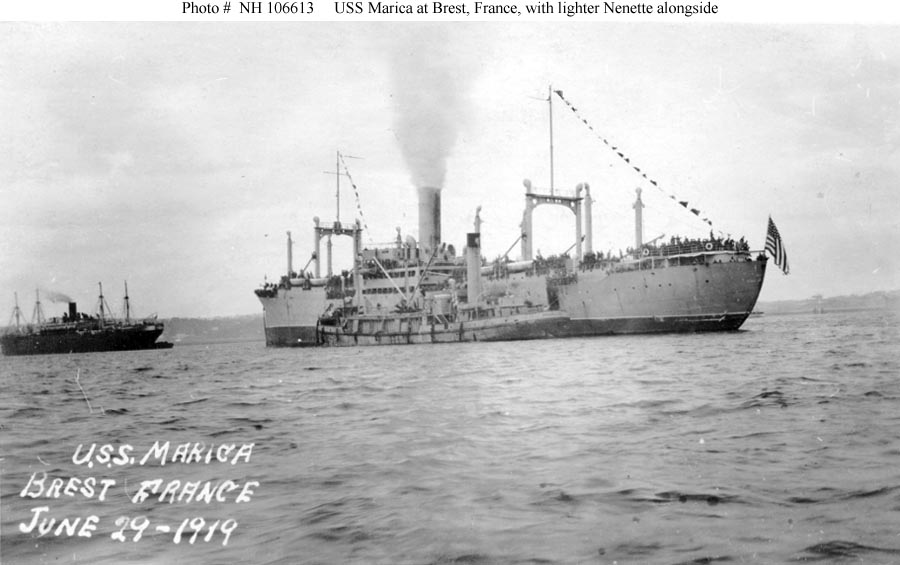 S.S. Marica was built at Chester, Pennsylvania, as an 8738 gross ton freighter for the Luckenbach Steamship Company of New York. Upon completion she was taken over by the Navy, converted to a transport, and placed in commission in June 1919 as USS Marica (ID # 4031). Following a few months' service returning U.S. service personnel from Europe, in mid-September 1919 she was decommissioned and turned over to the War Department for operation as the U.S. Army Transport Marica. She was soon returned to her owner, which reconverted her to a freighter and at some point renamed her Lillian Luckenbach. The ship's long commercial service lasted until 27 March 1943, when she was sunk off the U.S. East Coast in a collision with the S.S. Cape Henlopen.