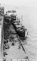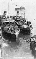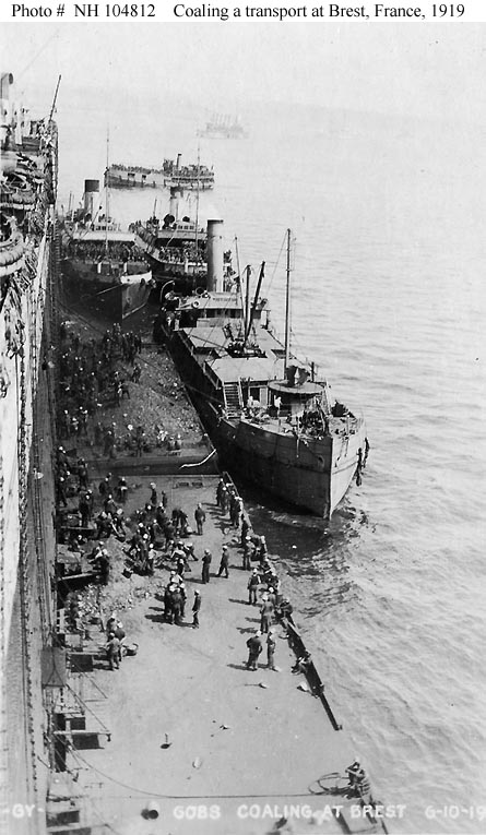 The following photographs shows barges and ferry lighters alongside USS Imperator, or a ship that may be her:
