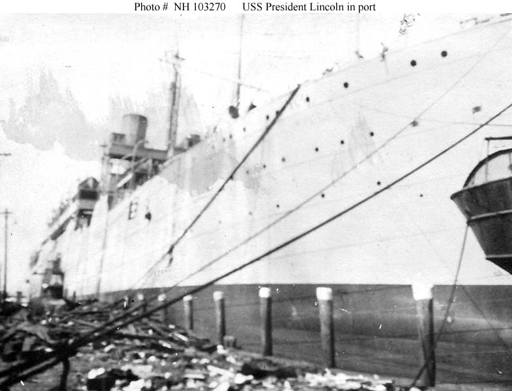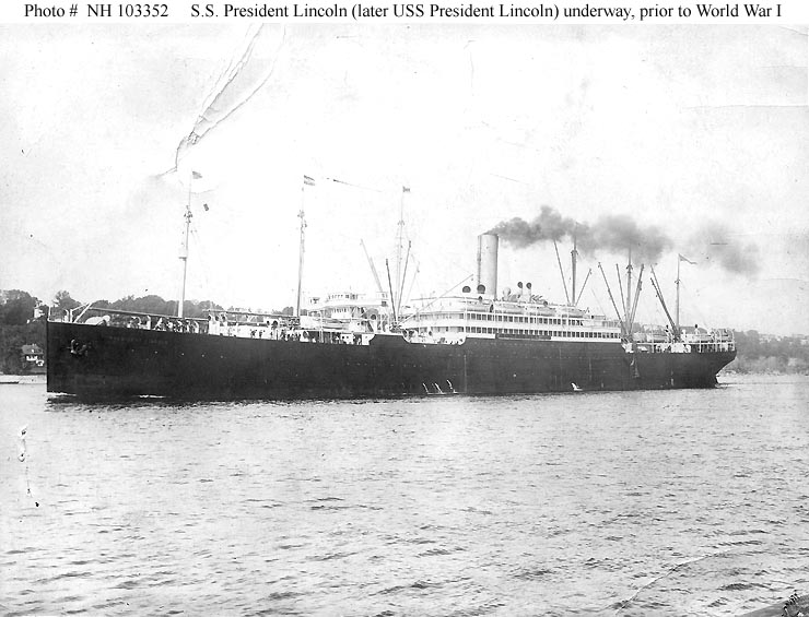 Photo #: NH 103270 USS President Lincoln (1917-1918) In port, circa 1917. U.S. Naval Historical Center Photograph. Online Image: 62KB; 740 x 565 pixels |