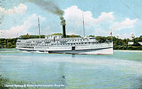 Photo #: NH 105645-KN S.S. Ransom B. Fuller (American river steamer, 1902) Shown on the Kennebec River, Maine, probably soon after entering service in 1902. The postcard bearing this image was postmarked at Cardiner, Maine, (probably Gardiner, a town on the Kennebec south of Augusta) on 8 August 1910. This vessel was acquired by the Navy in November 1917 for use as a barracks ship at New London, Connecticut, but was returned to her owner in April 1918. Donation of Captain Stephen S. Roberts, USNR (Retired), 2008. U.S. Naval Historical Center Photograph. Online Image: 92KB; 740 x 495 pixels |