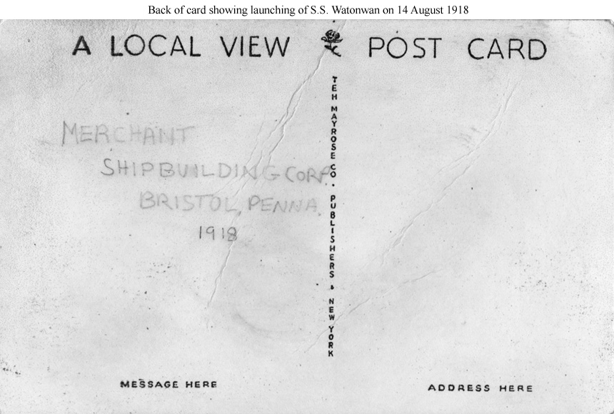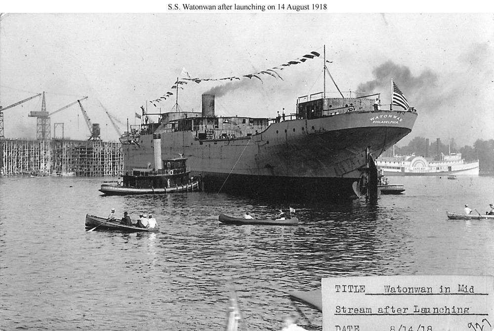 Photo #: Unknown S.S. Watonwan (U.S. cargo ship, 1918) After launching on 14 August 1918. The reverse side of this post card may be seen here. Donation of Dr. Mark Kulikowski, circa 2013. U.S. Naval History and Heritage Command Photograph. |
