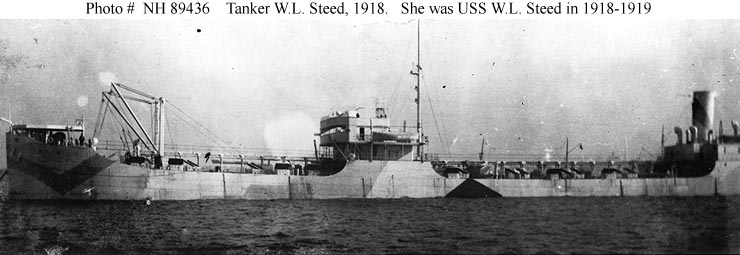 This page features all available views concerning the tanker W.L. Steed, which was USS W.L. Steed (ID # 3449) in 1918-1919.