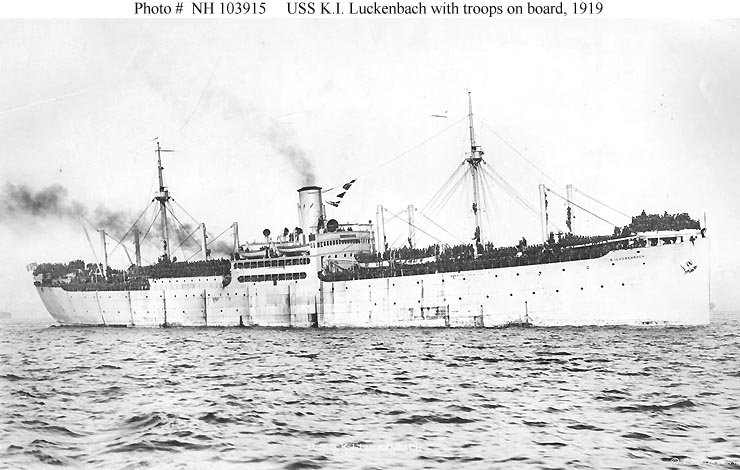 A Note on Sources: The basic listing of 125 commissioned U.S. Navy trans-Atlantic transports is taken from the 1919 Annual Report of the Secretary of the Navy, Appendix F. This extremely useful source provides statistics on the individual ships, the number of pre- and post-Armistice voyages made by each vessel, and the number of passengers transported. Tonnage (gross tons in the great majority of cases. Displacement tons for a few ships) and dimensions come from several sources. Primarily, dimensions and some tonnage data were taken from the 1918-1919 and 1919-1920 editions of Lloyds Register of Shipping. Tonnage data was also obtained from individual ship data cards. A modest amount of dimension data came from the Dictionary of American Naval Fighting Ships.