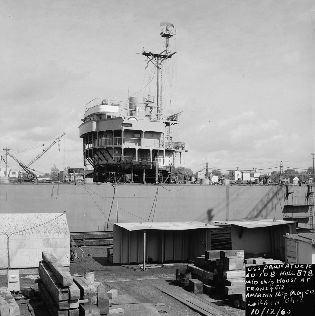 Pawcatuck's midship house on 12 October 1965 after being transferred onto the new midbody.