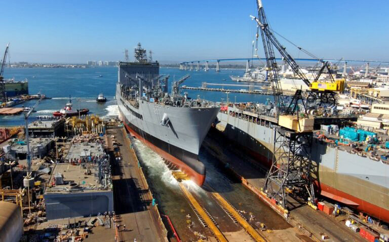 After launching on 12 January 2021. The ship appears to be nearly complete. Photo by GD NASSCO.